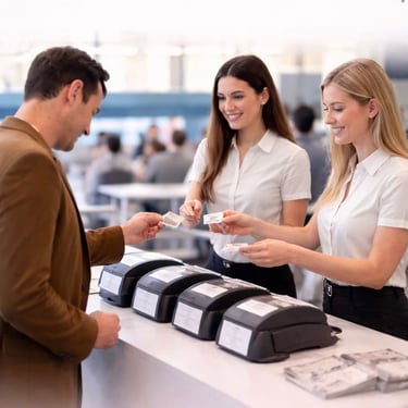 עם ניסיון עשיר בניהול כנסים, אירועי קד"מ ותערוכות, אנחנו דואגים שהרושם הראשוני של האורחים שלכם יהיה מושלם. הצוותים שלנו נבחרים בקפידה ומודרכים להעניק שירות אדיב, ייצוגי ומקצועי, בזמן שהמערכות הטכנולוגיות שלנו מבטיחות שכל פרט בניהול האירוע יתקתק כמו שעון.